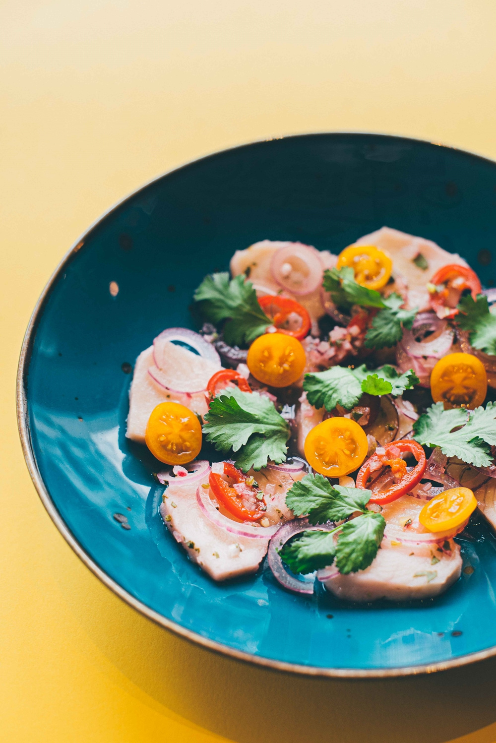 42,- Ceviche z serioli z miechunką i leche de tigre