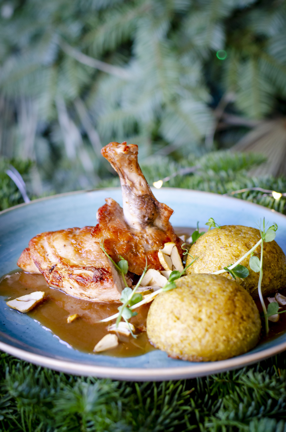 67,- Udziec jagnięcy„na dziko” podany na wielkopolskiej drożdżowej pyzie z żurawiną